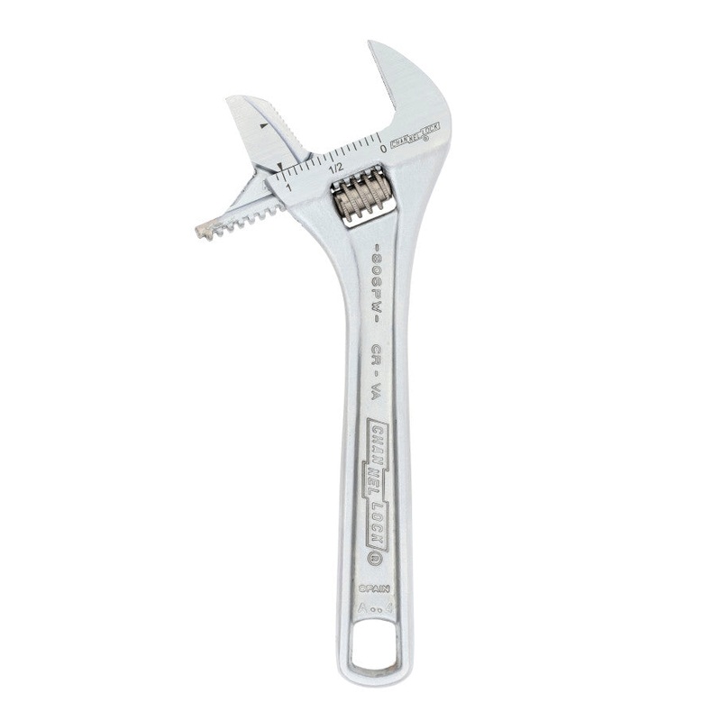 Channellock Reversible Jaw Chrome Adjustable Wrench, 6 in - CL 806PW The 806PW CHANNELLOCK 6" Reversible Jaw, Extra Wide Adjustable Wrench features an additional pipe wrench jaw option, making this strong and reliable wrench more versatile than ever. The r