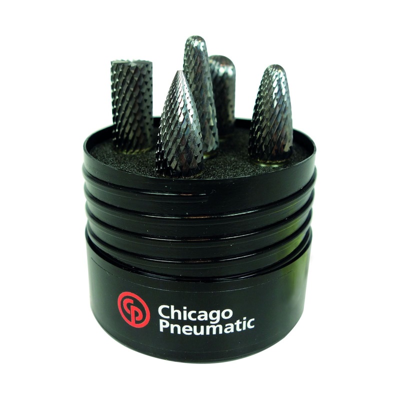 Chicago Pneumatic Set of 5 1/4 in Shank Power Cut Burr Kit, Imp – CP 8940172241