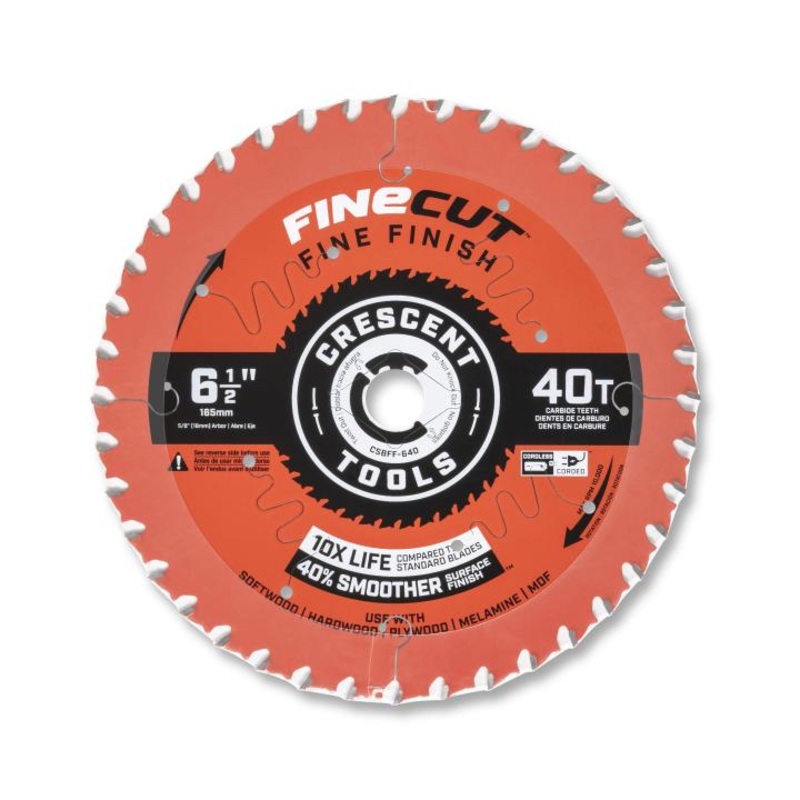 CRESCENT FineCut Fine Finishing Circular Saw Blade, 6-1/2 in x 40-Tooth - GW CSBFF-640CRESCENT's FineCut Finishing Blades deliver quality cutting performance for a superior finish over the life of the blade. Premium precision carbide teeth slice through wo