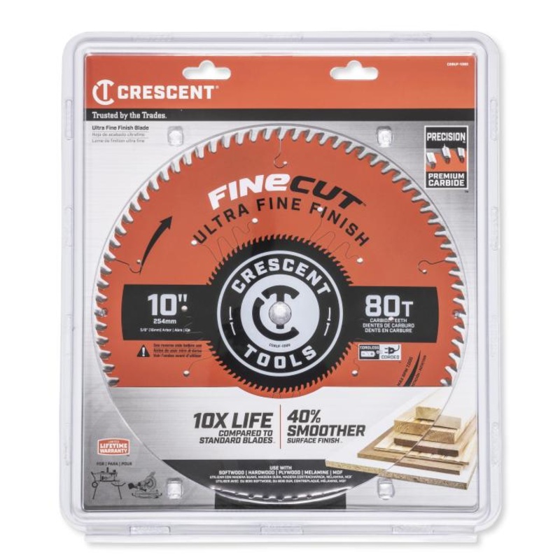 CRESCENT FineCut Ultra Fine Finishing Circular Saw Blade, 10 in x 80-Tooth - GW CSBUF-1080CRESCENT's FineCut Finishing Blades deliver quality cutting performance for a superior finish over the life of the blade. Premium precision carbide teeth slice throug