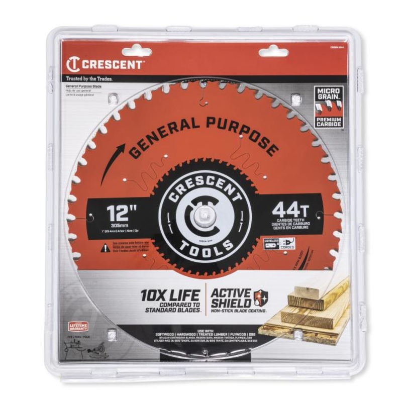 CRESCENT General Purpose Circular Saw Blade, 12 in x 44-Tooth - GW CSBGN-1244CRESCENT's General Purpose Blades deliver quality cutting performance for tough demands on the jobsite. Premium Micro Grain carbide teeth slice through wood with ease delivering 1