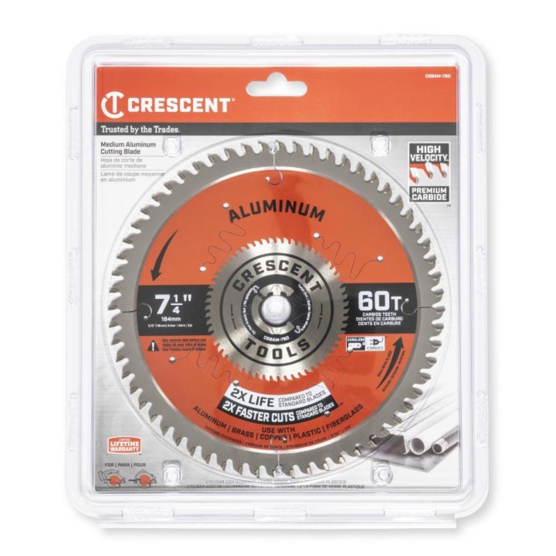 CRESCENT Medium Aluminum Circular Saw Blade, 7-1/4 in x 60-Tooth - GW CSBAM-760CRESCENT's Aluminum Blades deliver quality cutting performance for tough demands on the jobsite. Premium High Velocity carbide teeth slice through aluminum with ease delivering