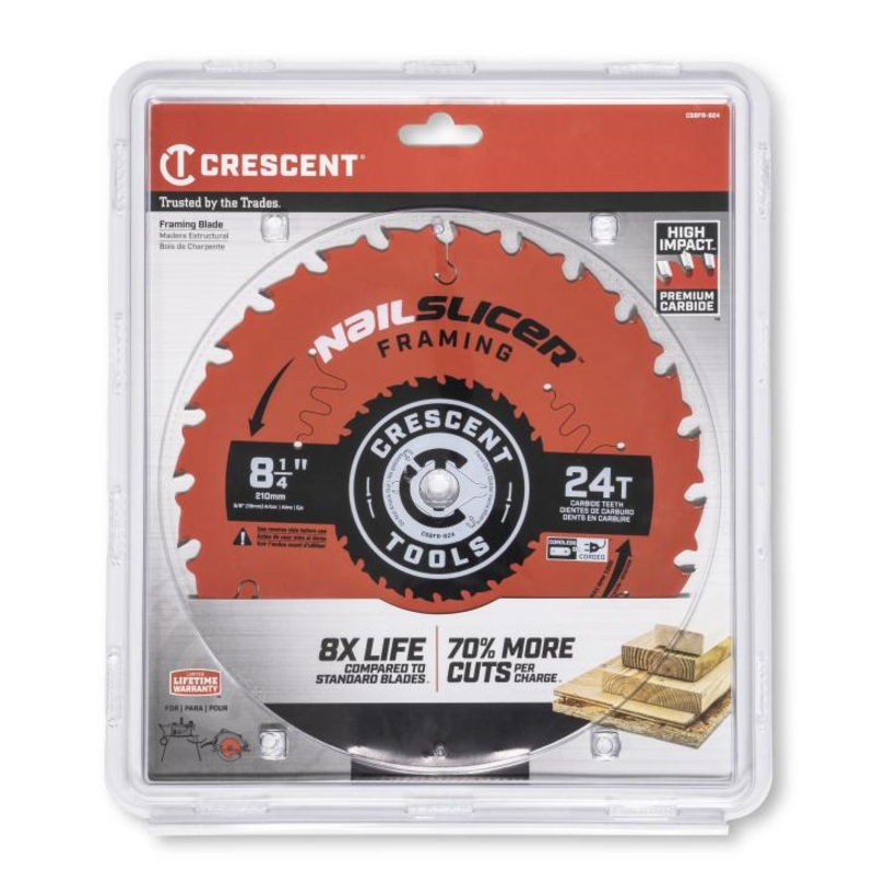 CRESCENT NailSlicer Framing Circular Saw Blade, 8-1/4 in x 24-Tooth - GW CSBFR-824CRESCENT's NailSlicer Framing Blades deliver quality cutting performance for tough demands on the jobsite. Premium high impact carbide teeth slice through nail-embedded wood