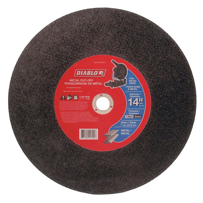DIABLO CDD140109A01F CHOP SAW BLADE 14" X 7/64" X 1"Diablo's premium Metal Cut-Off Disc provides premium performance and increases productivity. Diablo's Thin Kerf design provides for a thin cut, allowing your power tool to work at its full potential. This