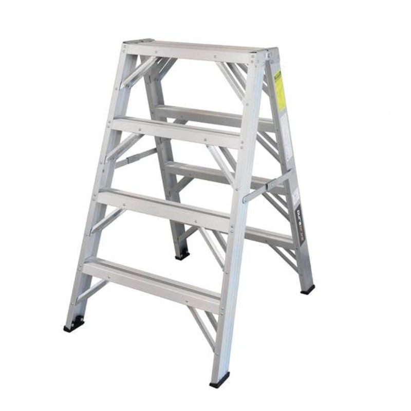 DuraDrive 4 ft. Aluminum Sawhorse Step Ladder with 300 lb. Load Capacity Type IA Duty Rating is ideal for use as a utility sawhorse. All steps are double-braced for ultra durability. Pinch-proof spreaders provide a secure stance. The DuraDrive saw horse ladder meets or exceeds the safety standards set by CSA.