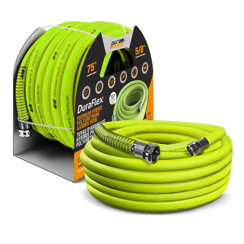 DescriptionDuraDrive LG5875F 5/8 in x 75 ft Lime Hybrid Polyurethane Garden Hose is made from hybrid PU polymer. As a premium duty hose, it features all season flexibility up to -58F, kink resistant and excellent durability. This superior hose is extremely