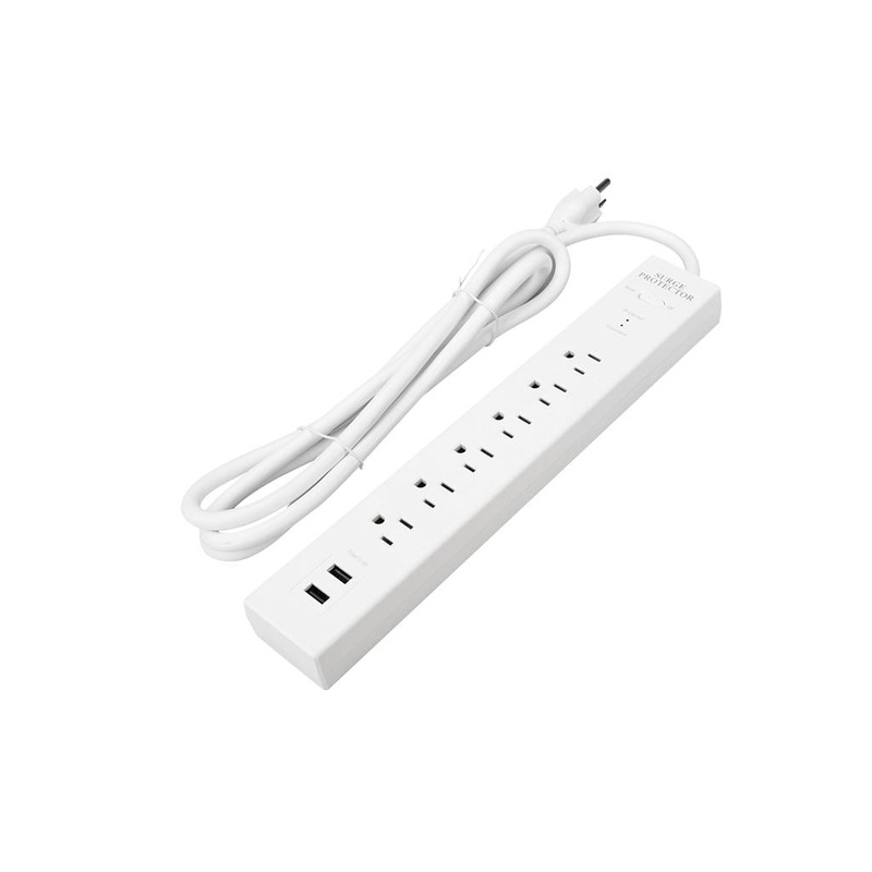 Description6-Outlet and 2 USB Charging Ports 2.4A with 270 Joule Surge Protector Power Strip and 6ft Cord. A quality product for the home, office, workshop and garage. Grounded Indoor use.Feature Bullets6 ft 14 gauge grounded power cordReset-Off master swi