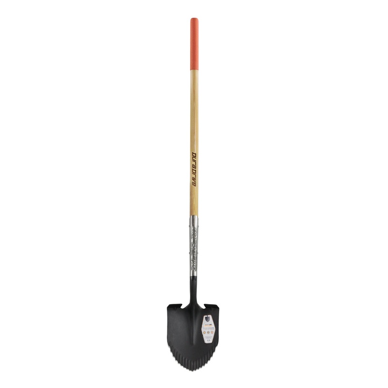 DuraDrive 60 in. Wood Beige Long Handle Round Point Carving Shovel has a 48-Inch wooden handle which provides an optimum range of resistance and flexibility. The Round Point Shovel can be used for house and road construction, farming, landscaping, utilitie