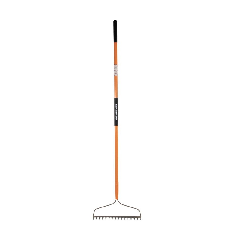 DuraDrive R101-16FL 68 in. 16-Tine Fibreglass Long Handle Hardened Steel Head Bow Rake is perfect for professionals and homeowners alike. This tool is ideal for loosening compact soil, spreading mulch or hay, collecting leaves or grass and leveling areas b