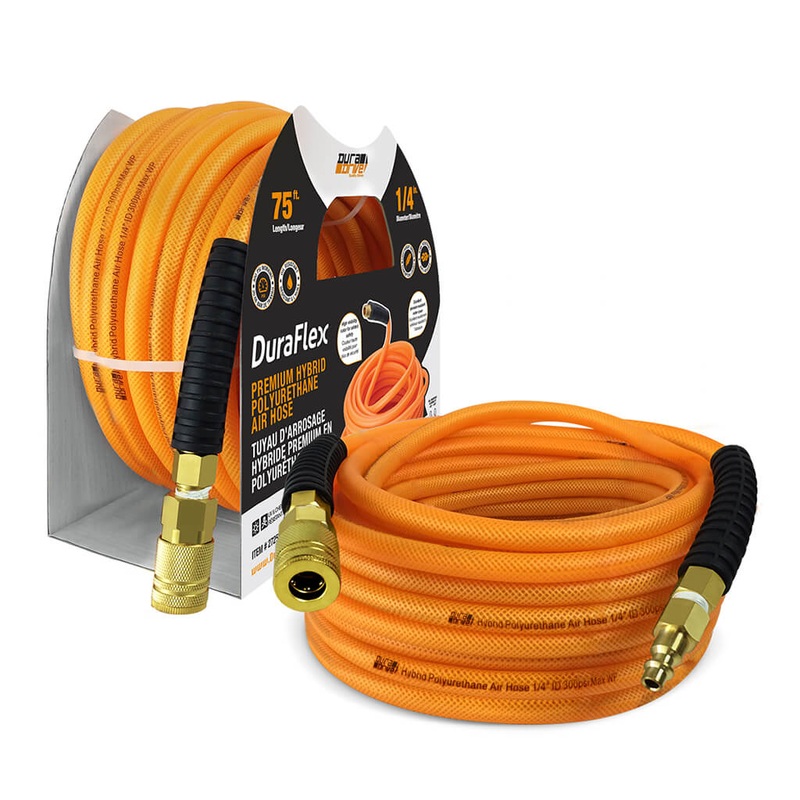 DescriptionDuraDrive FO1475F 1/4 in x 75 ft Orange Hybrid Polyurethane Air Hose with Swivel Fitting is made from premium hybrid PU polymer. As a revolutionary PU hose, it offers extreme flexibility and durability up to -58?. This superior hose is extremely