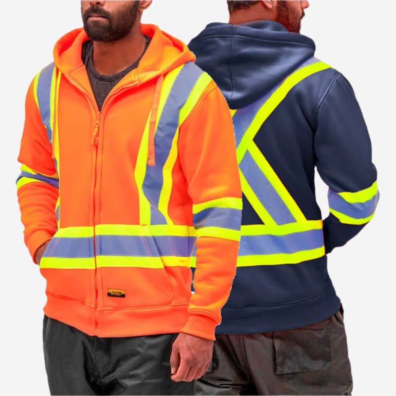 DuraDrive Men’s 4 in. Hi-Vis Reflective Stripes Hooded Jacket is made from 100% comfortable polyester giving extra layer of warmth and the high visibility reflective stripes ensure more safety when working in low visibility conditions. The jacket meets CSA-Z96 Class 1 Level 2.