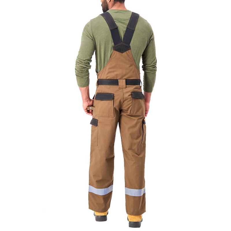 DuraDrive Men's TRADESMAN Timber Two Tone Overall with Hi-Vis Tape is made of 65% polyester, 35% cotton twill fabric and combines comfort, durability and functionality to stand up to the rigorous demands of the workday. The elasticized comfort waistband al