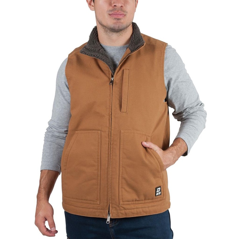 Feature BulletsSHERPA fleece lined washed duck mock-neck vest2-way YKK zipperLeft chest pocket with zipper100% cotton washed duckSherpa fleece liningInterior pocketSpecifications:Type: Washed Duck Mock-NeckSize: X-Small/Small/Medium/Large/X-Large/2X-Large/