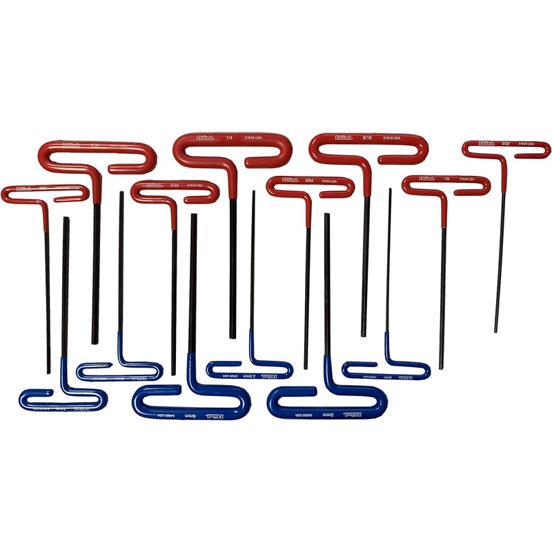- Eklind cushion grip T-key – keys that have longer shafts to provide extra reach and leverage, the smooth vinyl handles are comfortable and slip resistance, they stack nicely and are organized in a pouch for compact storage, even in your tool box
