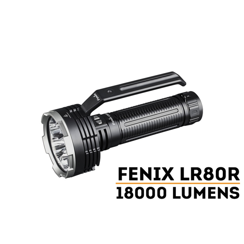 Fenix 18000 Lumen Rechargeable Search Light - F FX-LR80RThe Fenix LR80R is the definition of a super bright handheld searchlight. This flashlight will impress everyone with an outstanding 18000 lumens powered by the built-in 7.2V/12000mAh Li-ion battery pa