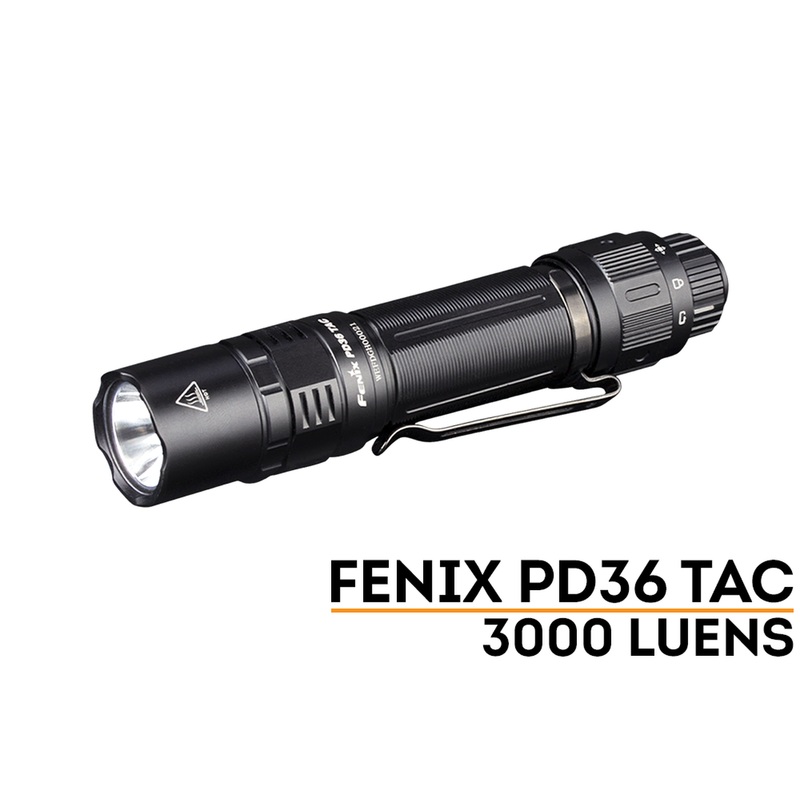 Fenix 3000 Lumen Tactical Flashlight - F FX-PD36TACThe Fenix PD36 TAC flashlight is a compact LED flashlight that's about 5.5 in in length and comes with a pocket clip making it easy to carry with you. This is the perfect flashlight for law enforcement, se