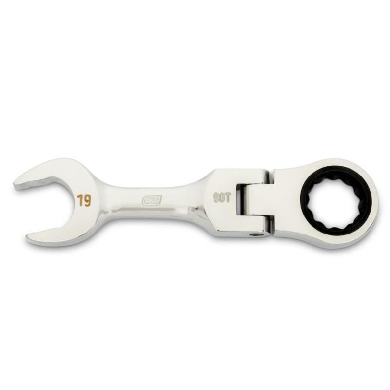 GEARWRENCH 90-Tooth 12-Point Stubby Flex Combination Ratcheting Wrench, 19mm - GW 86869 The GEARWRENCH 90 Tooth combination stubby ratcheting wrenches feature a 4 degree ratcheting arc vs. 30 degree on a standard combination wrench increasing productivity.