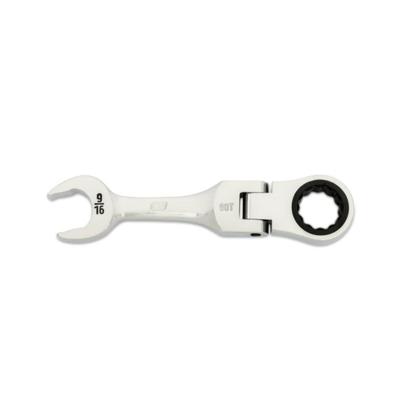 GEARWRENCH 90-Tooth 12-Point Stubby Flex Combination Ratcheting Wrench, 9/16 in - GW 86874 The GEARWRENCH 90 Tooth combination stubby ratcheting wrenches feature a 4 degree ratcheting arc vs. 30 degree on a standard combination wrench increasing productivi
