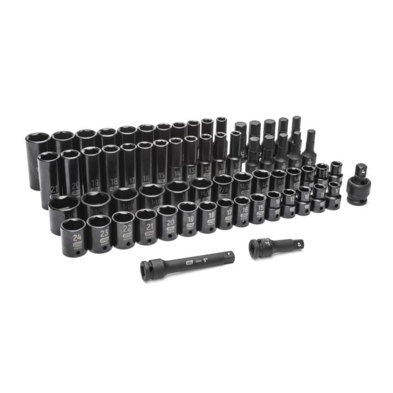 GEARWRENCH Set of 65 1/2 in Drive Standard/Deep SAE/Metric Master Impact Sockets - GW 89095 GEARWRENCH offers a wide range of impact sockets in open stock & sets that are designed to deliver the performance and strength that the professional users require.