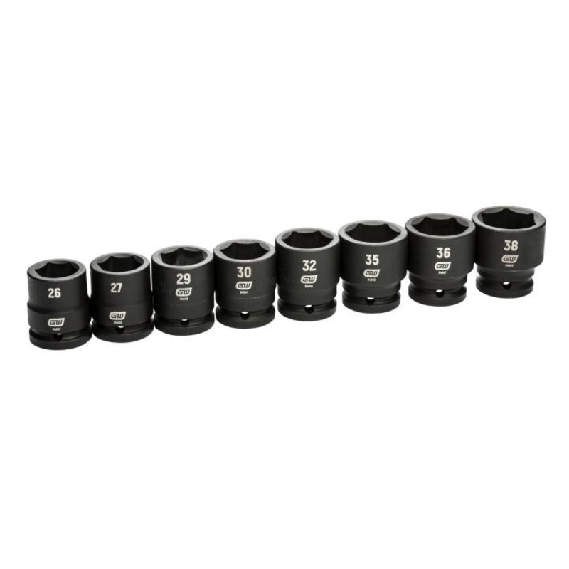 GEARWRENCH Set of 8 3/4 in Drive 6-Point Metric Impact Sockets - GW 84030 The GEARWRENCH 84030 - 3/4" Drive 8 Piece 6-Point Metric Impact Socket Set is built to handle even the harshest extreme professional work environment. The set features heavy duty imp