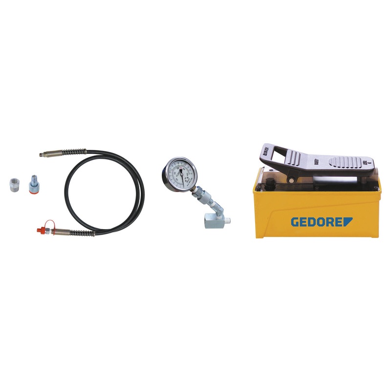 Gedore 2478706 Hydraulic Pump, Pneumatic, 17T - GD KL-0215-36 M25The air-operated hydraulic pump can be used as a drive for a hydraulic cylinder. Compressed air is used to drive the hydraulic pump. Operation is via a foot pedal with 3 settings for pumping,