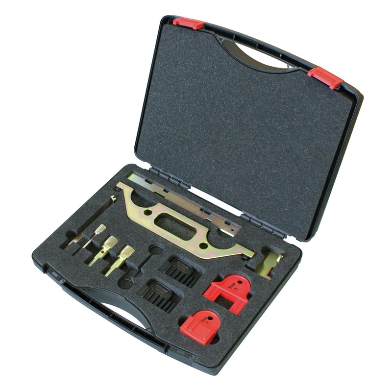 Designed for the locking/positioning and checking of engine shafts such as camshaft and crankshaft. The set also includes tools to lock/position the timing belt tensioner. An indispensable tool kit when replacing a timing belt or performing an engine repair. An indispensable tool kit when replacing a timing belt or performing an engine repair.