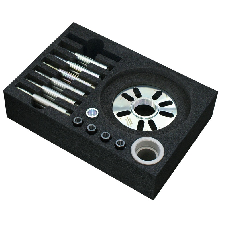 The tools of this set are designed be used with the KL-0040-2500 hydraulic cylinder for pressing out drive shafts. The set can also be used in conjunction with the KL-0049-31 slide hammer puller to extract wheel hubs, full-floating axles, etc. The tool control foam inserts of the KL-4999-131. Series are designed to keep the tools of the KL-00174. Puller Tool Series always properly organized and well protected. The modules can conveniently be stored in a workshop trolley such as the KL-4999-120 but also fit snugly in the robust stackable plastic storage cases of the KL-4999-139. Series. This ingenious tool storage system from GEDORE Automotive allows you to find the tool you need quickly and easily, and to identify missing tools at a glance. As a result, repairs can be carried out more efficiently – saving you time and money. The foam inserts are provided with specifically tool-shaped spaces to ensure that tools are safely stored and can be taken out and put back in place with ease. The KL-0174 puller series is almost universally applicable due to the use and composition of the various perforated discs, pull bolts and drives.
