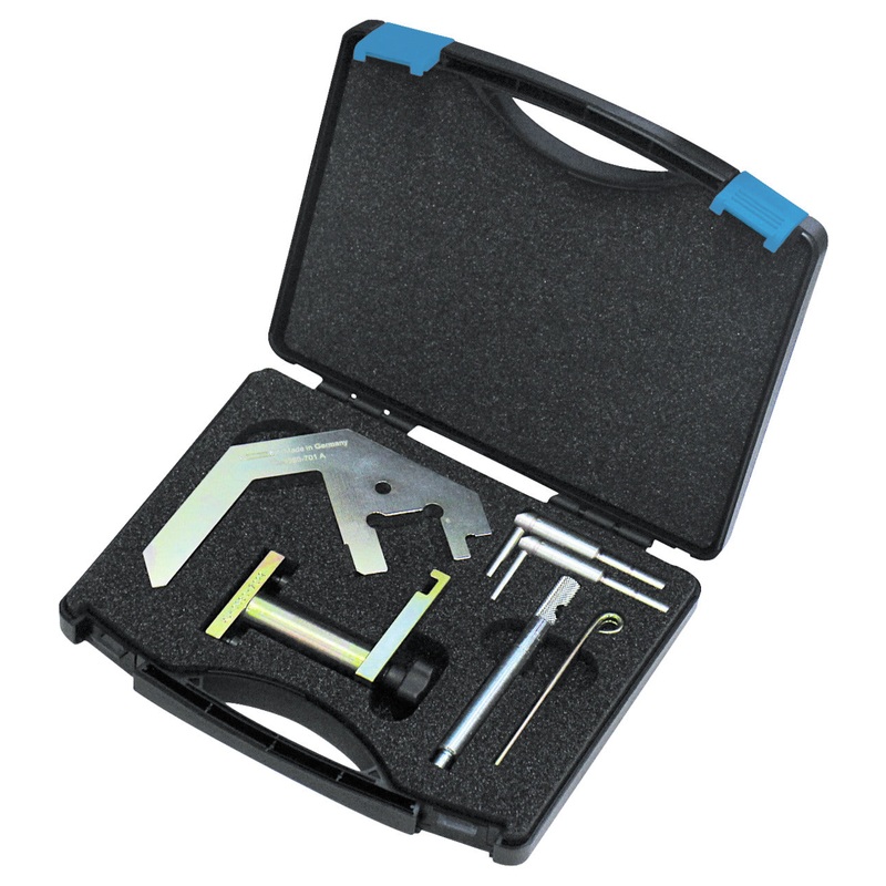 Designed for the locking/positioning of engine shafts such as camshafts and crankshaft, as well as of the flywheel and timing chain tensioner. An indispensable tool set when replacing a timing chain or performing an engine repair. An indispensable tool set when replacing a timing chain or performing an engine repair.