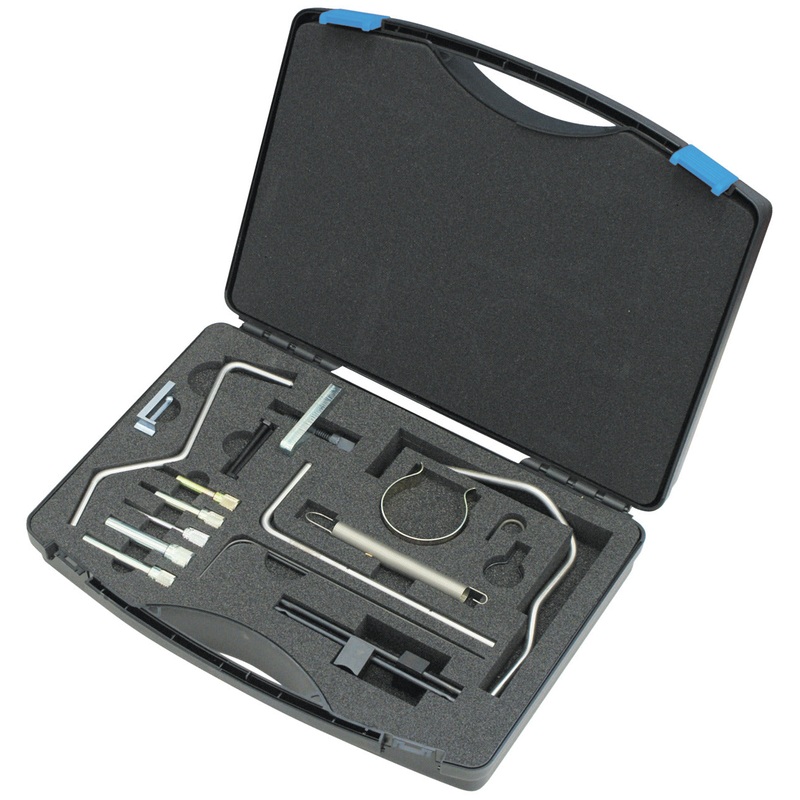 Gedore 2916371 Locking Toolkit, PSA (1.4 - 2.2 HDI), Width 395mm - GD KL-1380-26 KCFor locking/positioning the camshaft, crankshaft, injection pump shaft and flywheel. The kit also contains tools for adjusting the timing belt tensioner and for holding the