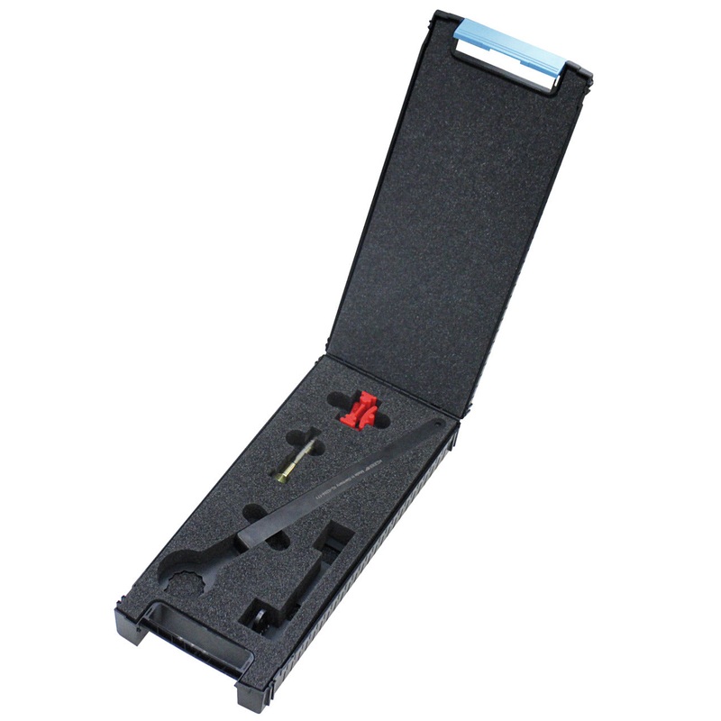 For the locking/positioning of camshafts, crankshaft and timing belt tensioner. An indispensable tool set when replacing a timing belt or performing an engine repair. Scope of Delivery: KL-0284-171 Adjustment Tool for Timing Belt Tensioner, Size (waf) 30mm. For positioning the timing belt tensioner. KL-0280-7661 A Locking Tool for Camshaft. For locking the exhaust camshaft. KL-0280-7662 A Locking Tool for Camshaft Sprockets. For locking the camshaft sprockets. KL-0280-6022 A Locking Screw for Crankshaft. For locking the crankshaft. KL-0280-7669 Plastic Storage Case. Required when changing the timing belt or repairing the engine.