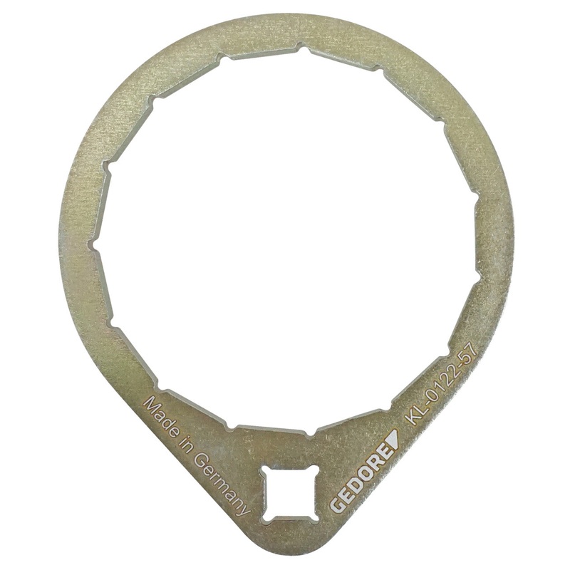Gedore 3245837 Oil Filter Socket, 74.5mm (waf), 15 Flats - GD KL-0122-57The special oil filter spanner with a lateral drive enables a quick and professional removal and tightening of the hard-to-reach oil filter cartridge. Because the space in front of the