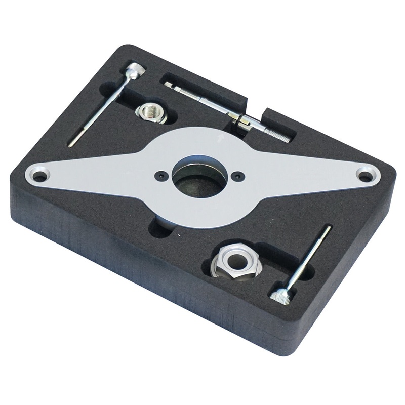 1 x KL-0280-7681 – Fixing of vibration damper, 1 x KL-0280-7682 – Fixing mandrel 114.2mm, 1 x KL-0280-7683 – Fixing mandrel 93.2mm, 1 x KL-0280-7684 – Centring piece, 1 x KL-0280-7685 – Crankshaft clamping device, 1 x KL-0280-7686 – Threaded bushing, 1 x KL-0280-7689 – Foam insert