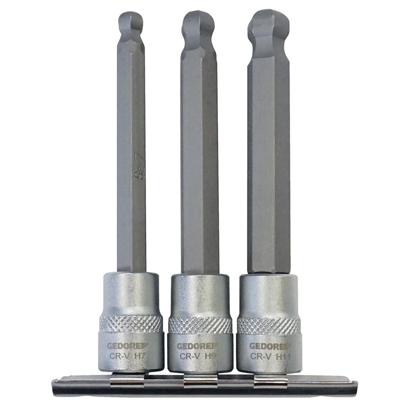 Gedore 3405494 3/8 in Drive Screwdriver Bit Socket Set with Ball Head - GD KL-4021-310For easy removal and tightening of brake caliper fastening screws. The special spherical head of the screwdriver bits also allows to work at an offset angle, for examples