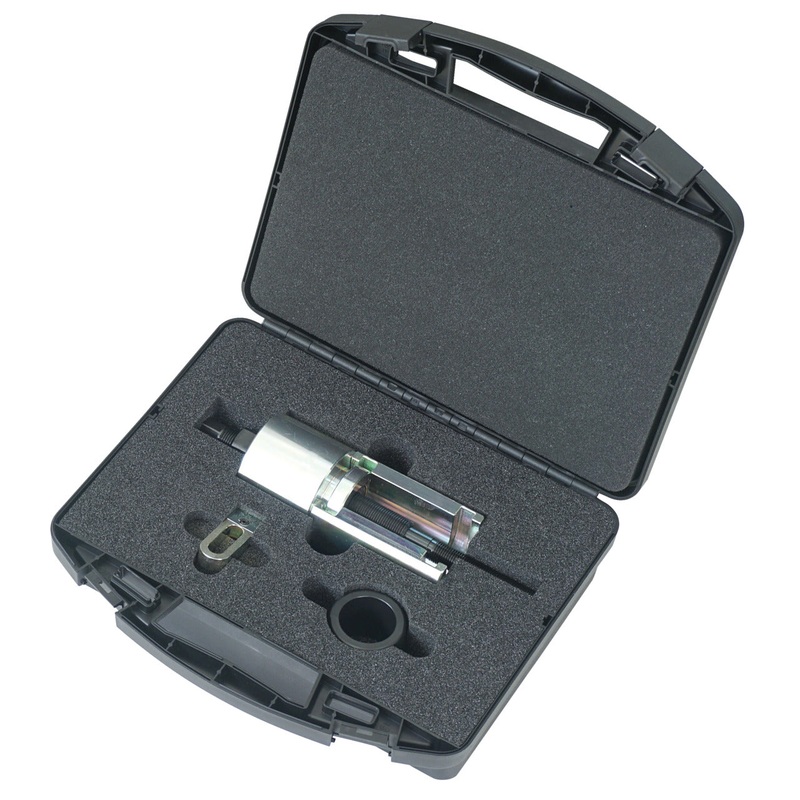 Required for professional removal and mounting of the timing chain sprocket on the crankshaft. Time-consuming loosening and lowering of the entire vehicle engine can thus be avoided. The flywheel locking tool included in the scope of delivery serves as an anti-rotation device for the crankshaft, and the press ring also allows the shaft seal to be pressed into the timing cover.