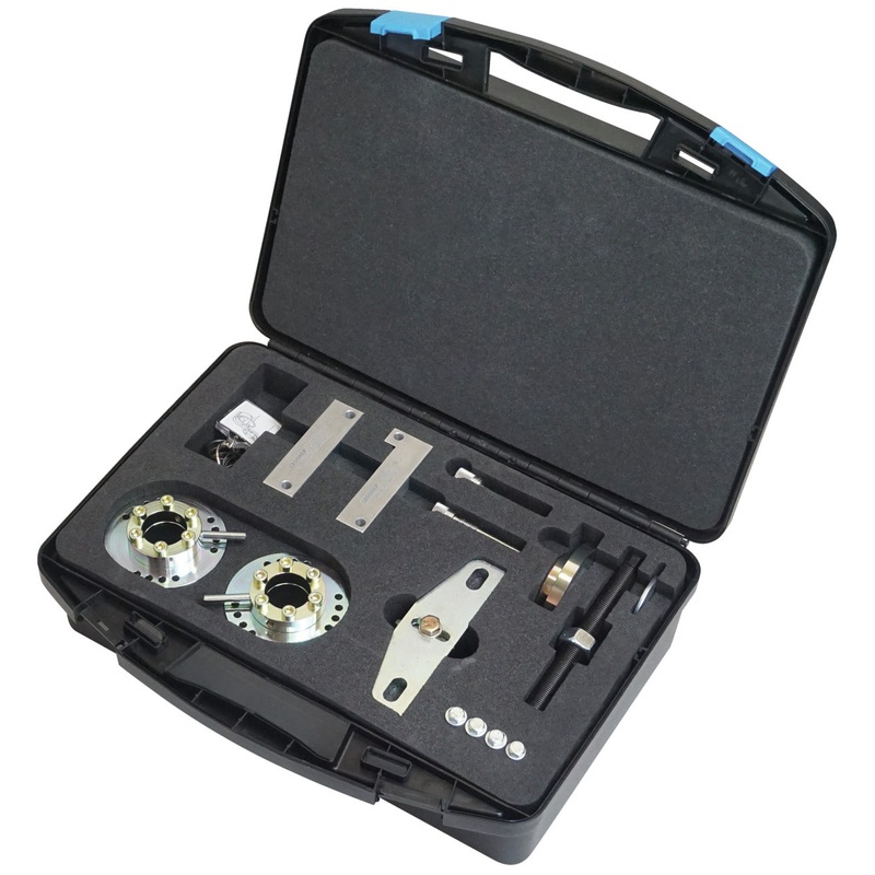 For locking the camshafts, timing belt tensioner, crankshaft, and flywheel. For adjusting the camshaft phasers. For pressing in the crankshaft seal ring. Required, for example, when changing the timing belt and repairing the engine.