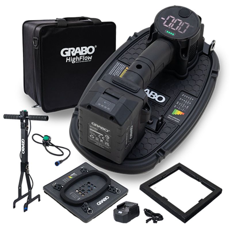 The GRABO High-Flow stands as GRABO's most advanced tool with more power and improved vacuum technology, revolutionizing the way challenging objects are handled. This versatile, portable electric vacuum lifter effortlessly manages a variety of materials, i